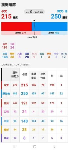 「第50回衆議院選挙」が昨晩終了した。 【結果】 与党自民党が単独過半数は愚か自公連立でも過半数(233議席)に18議席届かず敗戦。 反対に立憲民主党、国民民主党は大幅に議席を伸ばした(れいわ、参政党、保守党も少しだけ増やす)。 でも総選挙後30日以内に開…
